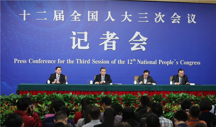 外交部長王毅在十二屆全國人大三次會議舉行的記者會上就中國外交政策和對外關(guān)系回答中外記者提問