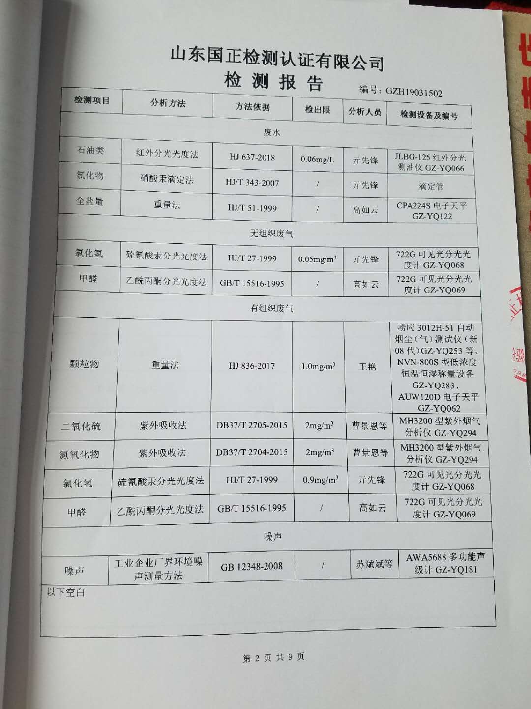 | 主要內(nèi)容 | 與山東國正檢測認(rèn)證有限公司簽訂環(huán)境檢測協(xié)議,委托第三方機(jī)構(gòu)對(duì)我公司進(jìn)行環(huán)境檢測,檢測頻次、地點(diǎn)及項(xiàng)目等與環(huán)評(píng)報(bào)告要求一致。 |