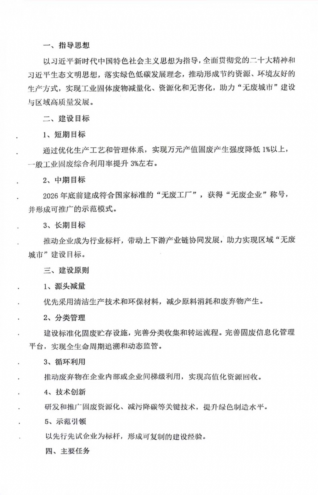 山東鑫泰水處理技術(shù)股份有限公司“無廢工廠”建設(shè)工作實施方案